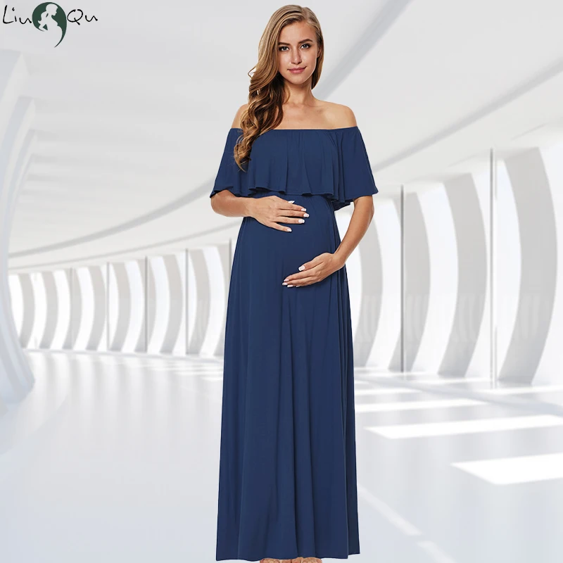 Длинное платье с оборками, платье с открытыми плечами для беременных, платье макси для беременных, Одежда для беременных