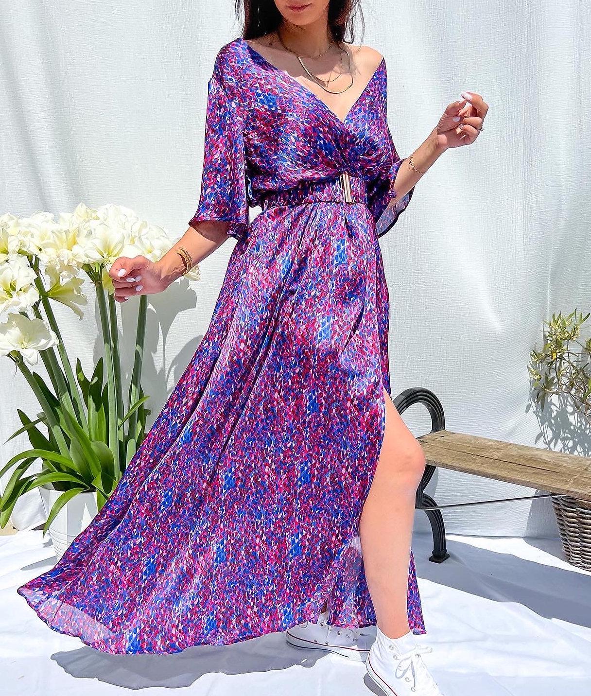 Длинное платье с поясом и V-образным вырезом, лето 2023 г. Small фиолетовый