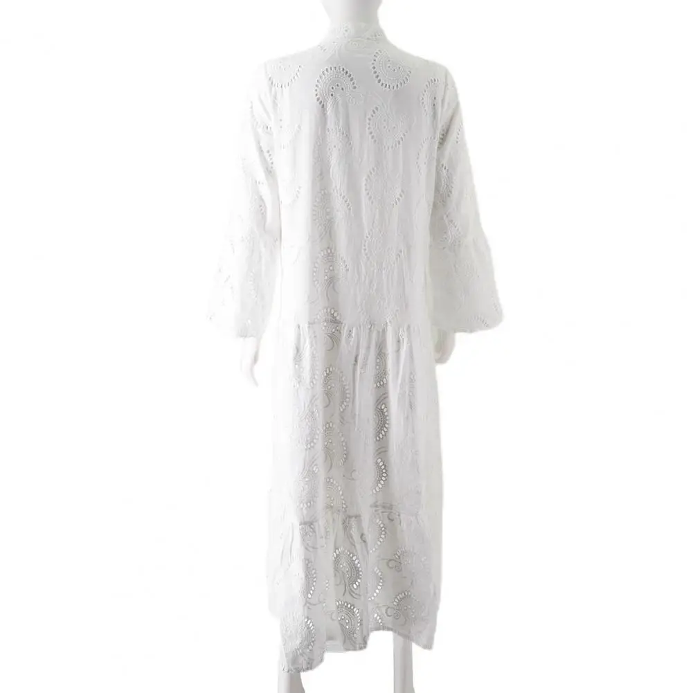 Длинное платье с рукавом 3/4, шикарные кружевные платья макси с вышивкой и расклешенными рукавами, V-образный вырез, подол с оборками для элегантных случаев, лето