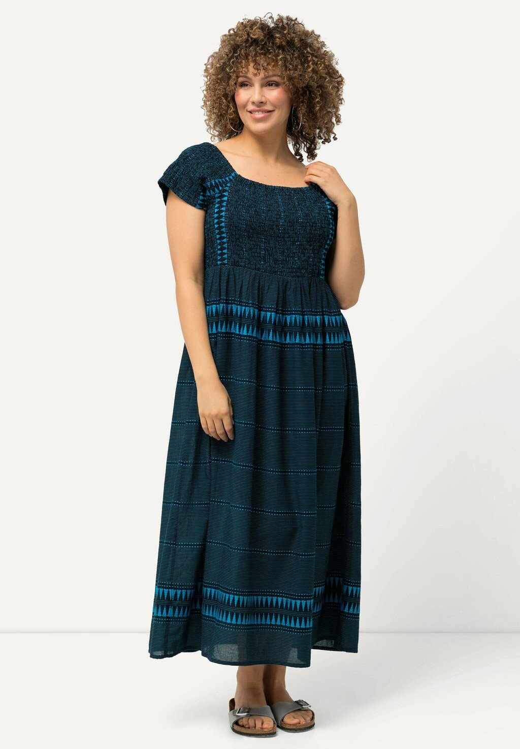 Длинное платье MIXED PRINT STRIPED CAP SLEEVE Ulla Popken, темно-синий
