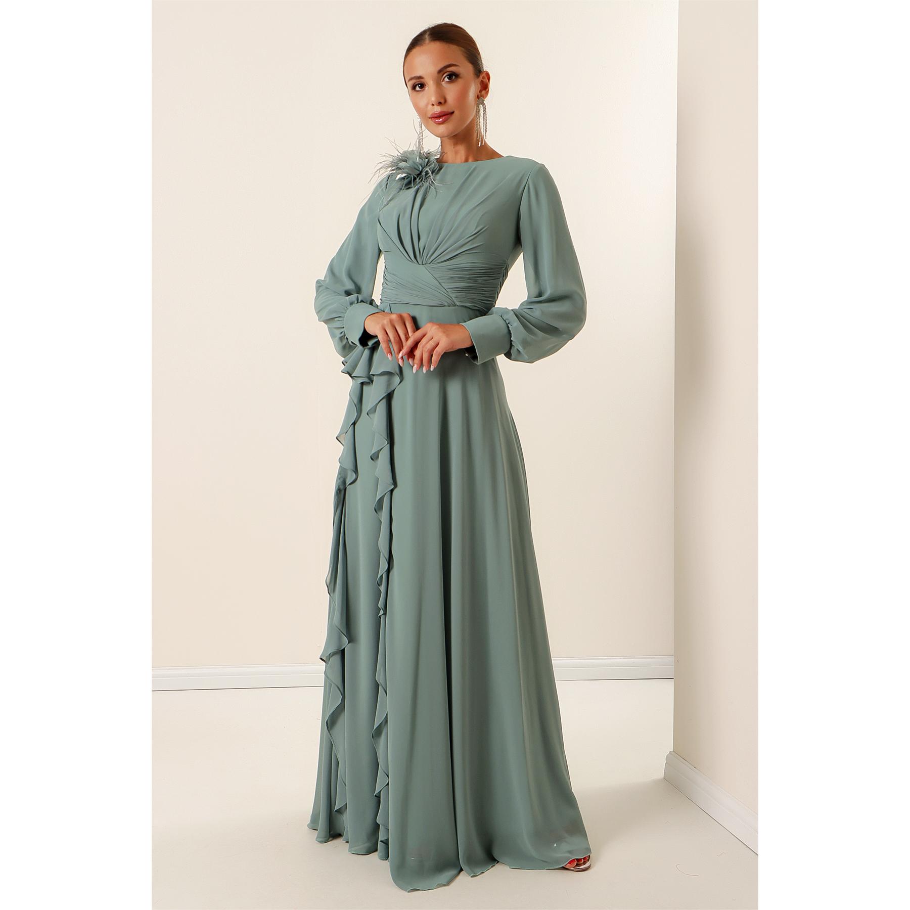 Длинное шифоновое платье со складками и оборками по бокам с цветочным принтом