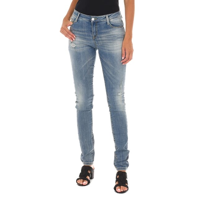 Длинные джинсовые брюки с эффектом потертости и рваности 10db50305 женщина Met, синий