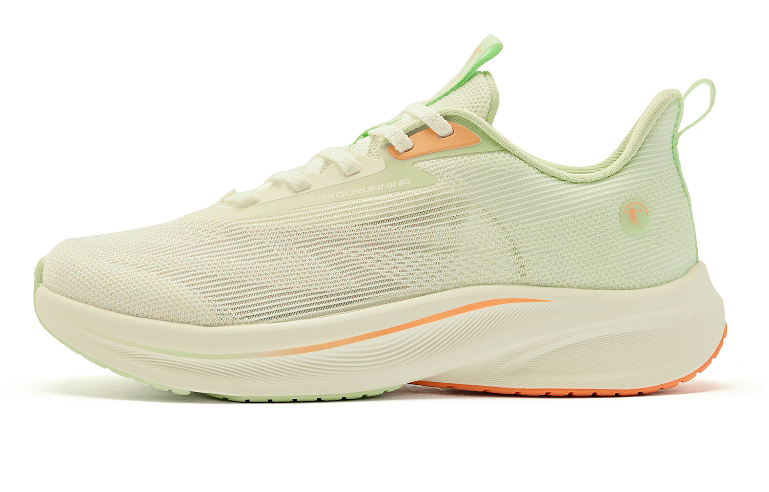Кроссовки для бега Light Speed 4.0 женские с низким верхом цвета слоновой кости и лаймового зеленого цвета Qiaodan