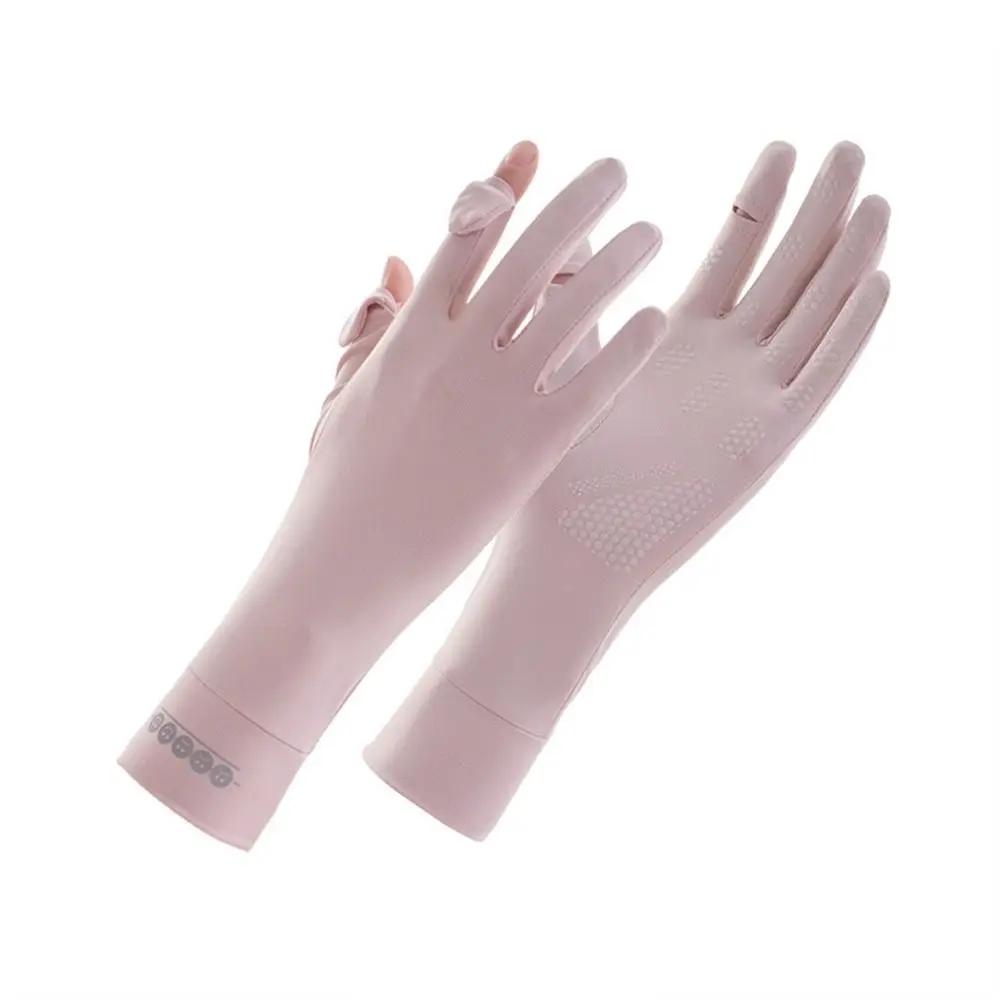 Длинные солнцезащитные перчатки Модные тонкие эластичные митенки с защитой от УФ-лучей Нескользящие ледяной шелк Велосипедные перчатки для вождения Женские Девушки розовый