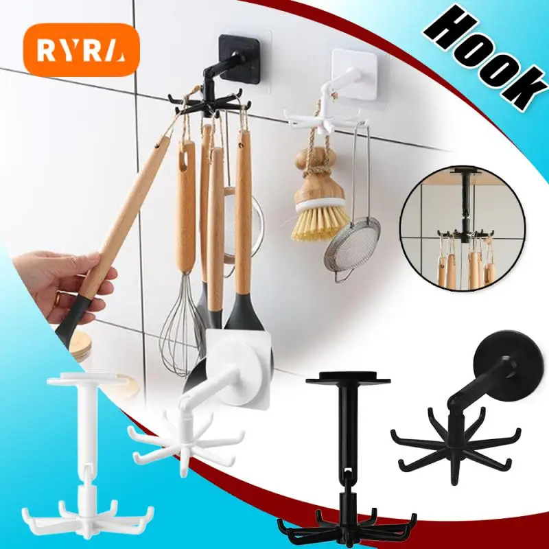 Вращающийся крючок с пятью когтями, многофункциональный крючок, кухонный органайзер, самоклеящийся крючок для подвешивания, домашние гаджеты