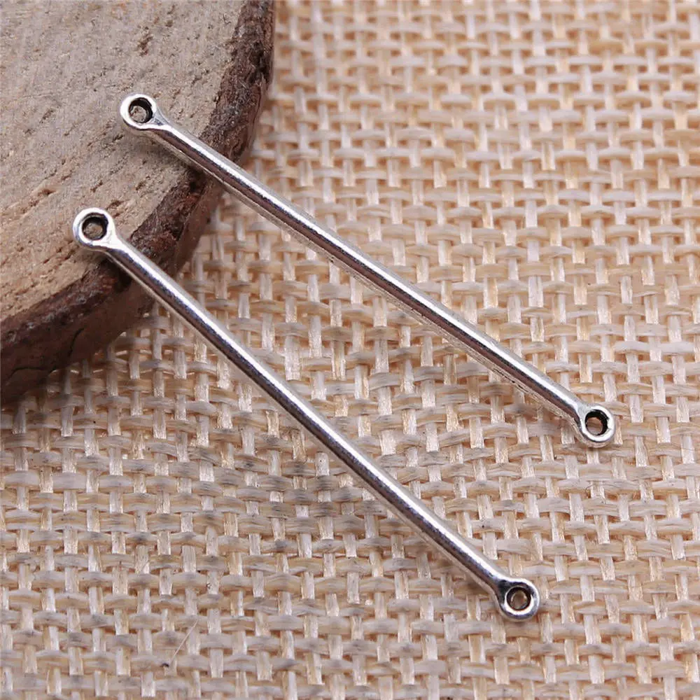 Длинные шармы-соединители для бижутерии, серебристого цвета, 0,08x1,34 дюйма, 2x34 мм, 20 шт./партия