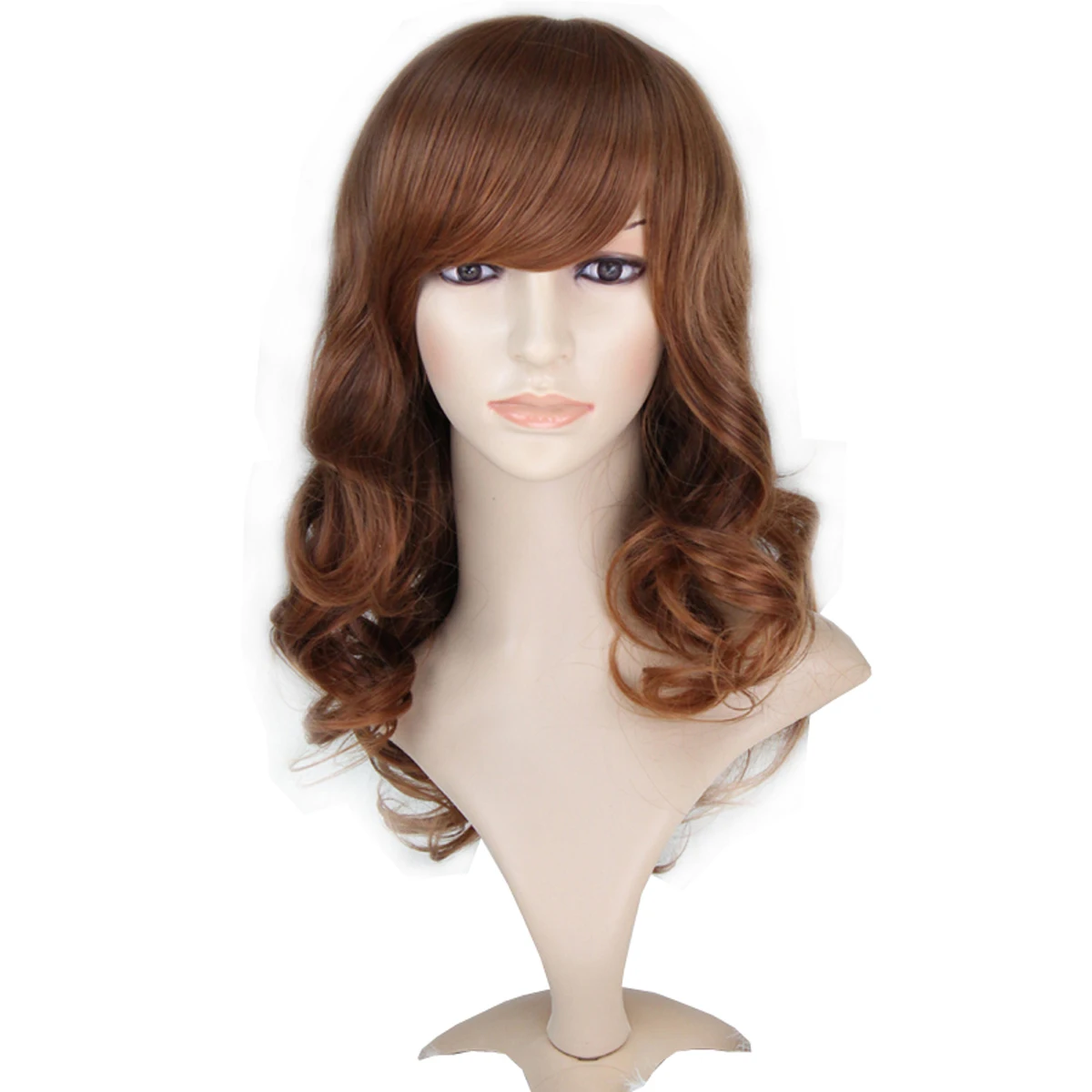Длинный вьющийся коричневый парик с челкой для женщин и девушек на Хэллоуин косплей синтетические волосы