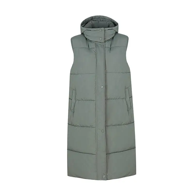 Длинный женский зимний длинный пуховой жилет с капюшоном, большие ярды, утепленная майка, пальто для зимы