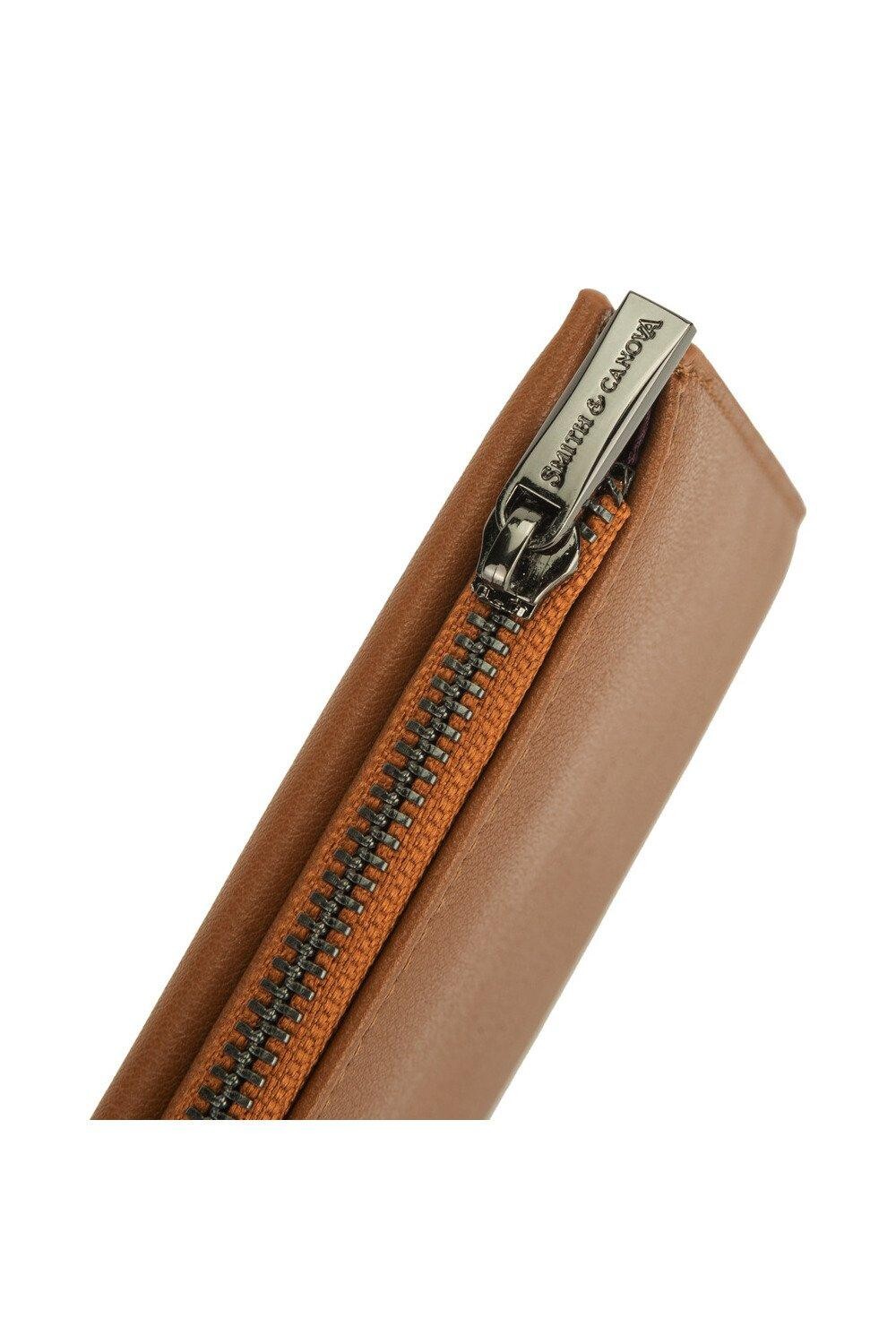 Длинный карманный кошелек из гладкой кожи на молнии Smith and Canova, коричневый