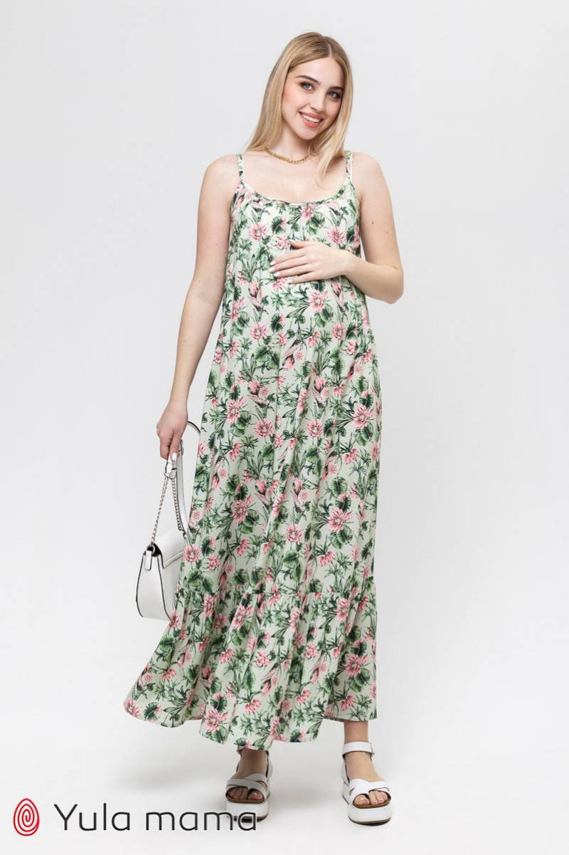 Длинный сарафан для беременных и кормящих в бохо-стиле с регулируемыми бретелями.