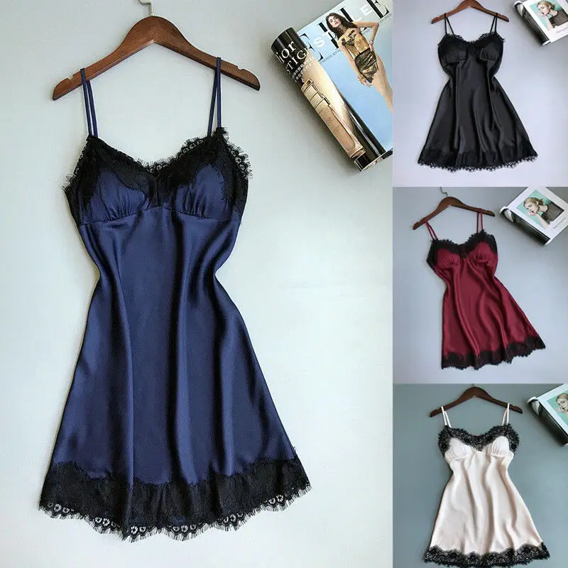 Для женщин сексуальные гетры с кружевами из шелка, одежда для сна, с низким вырезом на спине на бретелях без рукавов, Детское Белье для сна до...