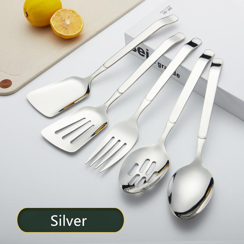 Для кухни Домашняя утварь для приготовления пищи Нержавеющая сталь Большая ложка Салат Помешивание Столовые приборы Сервировочный набор Вилка Полая лопатка серебряный