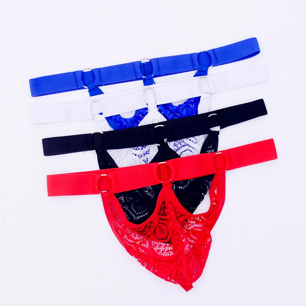 Для мужчин s три кольца см Throngh кружевные стринги Трусы Синий сексуальное мужское белье нижнее белье