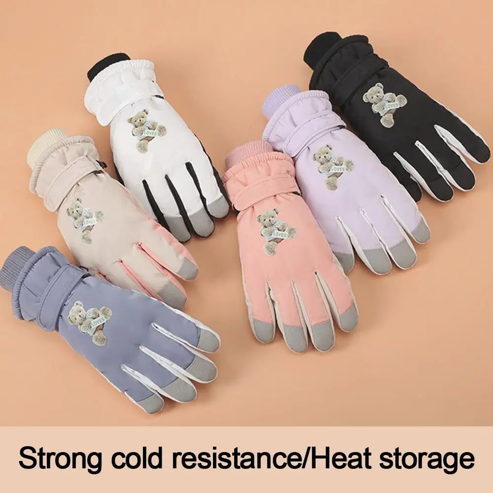 Fashion Men Women Ski Gloves Creative Bear Full Finger Gloves Warm Touch Screen Mittens Outdoor Waterproof Windproof Gloves