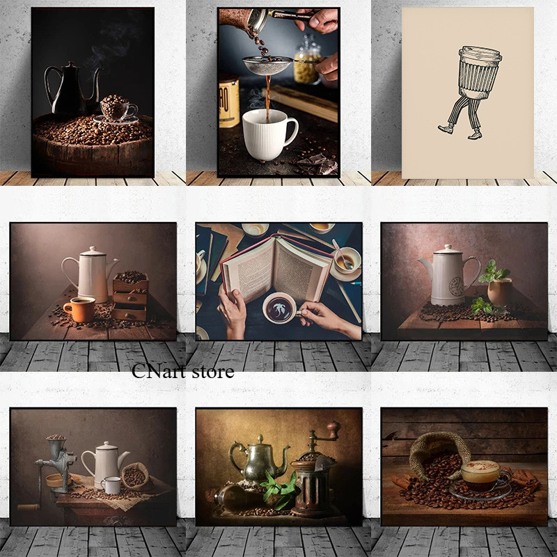Vintage Hand Coffee Latte Bars Kitchen Coffee Cup Coffee Bean Art Poster Canvas Painting Wall Prints Picture for Room Home Decor