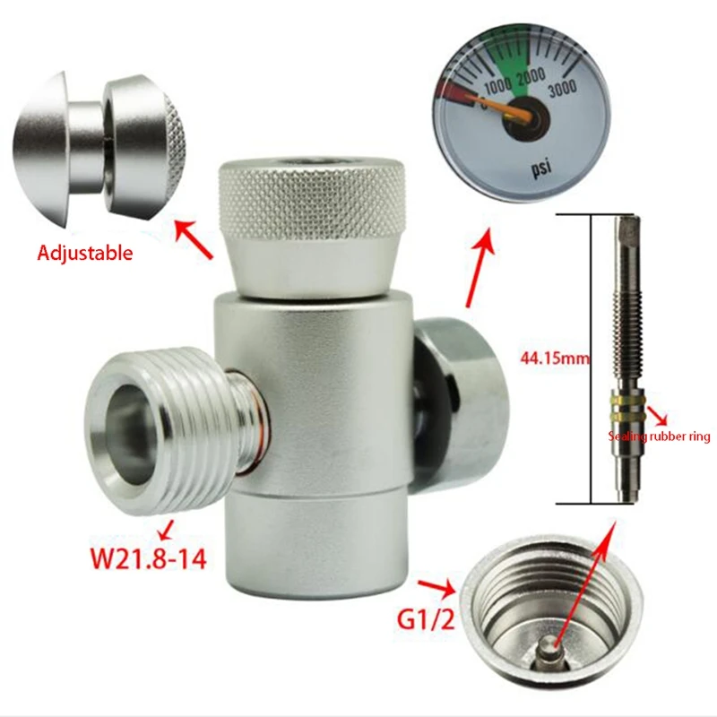 Для 3000 PSI CO2 заполняющий адаптер регулятор вкл/выкл манометр клапан для адаптер для наружных работ, серебристый