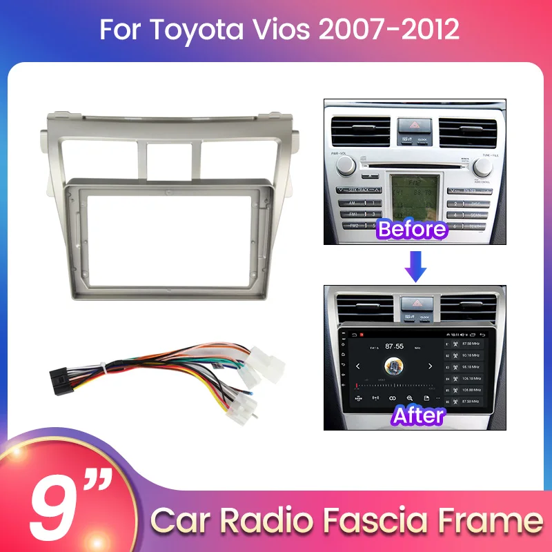 Для 9-дюймового хоста Android 2DIN автомобильный радиоприемник рамка для Toyota Vios Yaris 2007 2008-2012 с кабелем комплект панели приборной панели