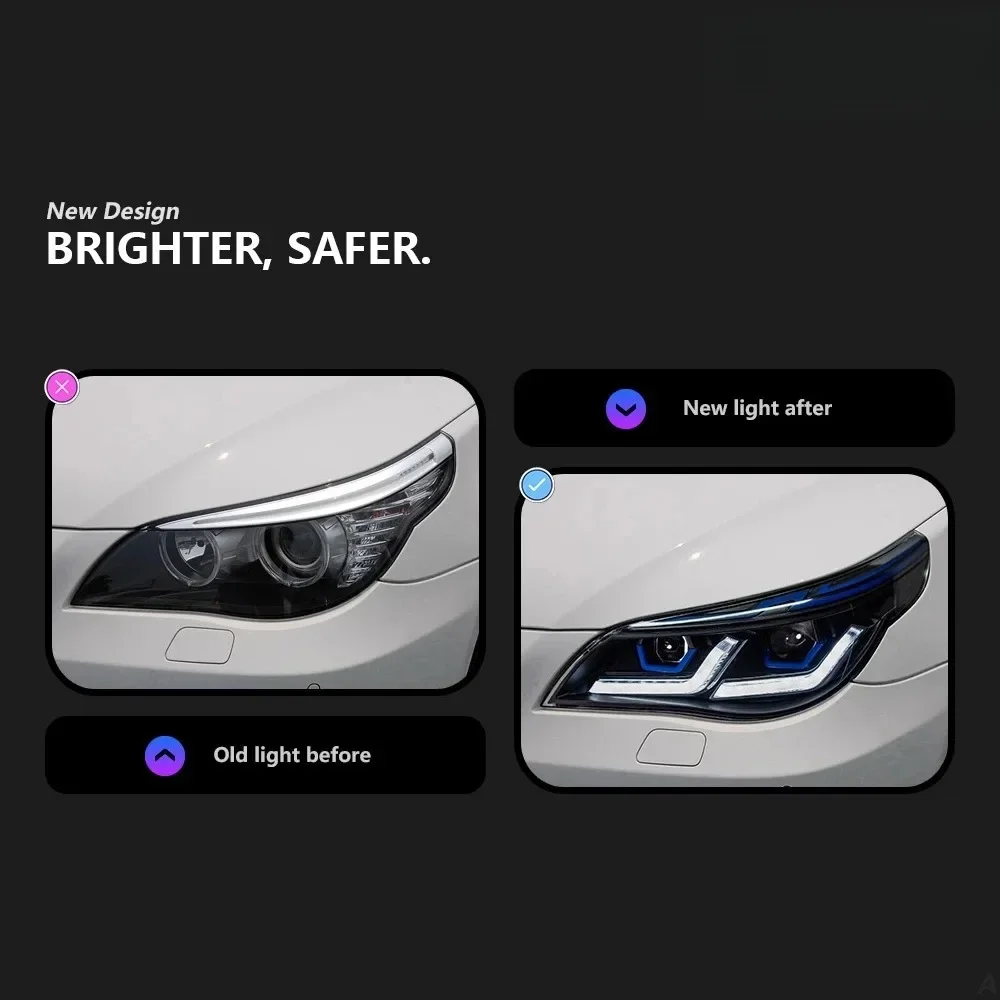For BMW E60 Headlights 2003-2009 523i 530i Angel Eye LED Headlight DRL Hid Bi Xenon Car Head Lamp upgrade Auto Accessories