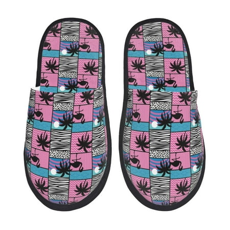Sigee Hawaii Palms for Cozy Furry Slippers Super Soft Indoor and Outdoor Use Non-Slip Sole Slip On House Slippers-Large