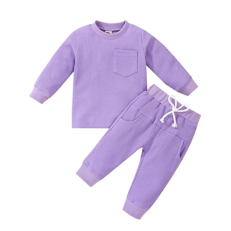 Meihuida Baby Girls Boy Clothes Outfit Solid Color Long Sleeve Sweatshirt Tops and Stretch Casual Drawstring Pants Set