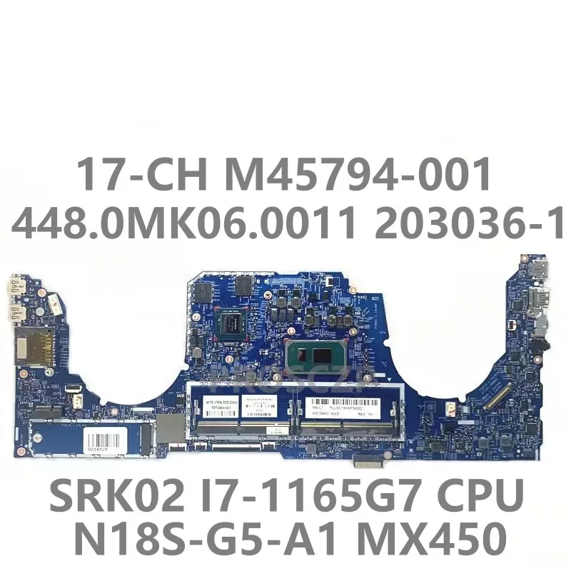 Для HP 17-CH M45794-601 448.0MK06.0011 203036-1 Материнская плата ноутбука с SRK02 I7-1165G 7 CPU M53466-601 MX450 100% протестирована