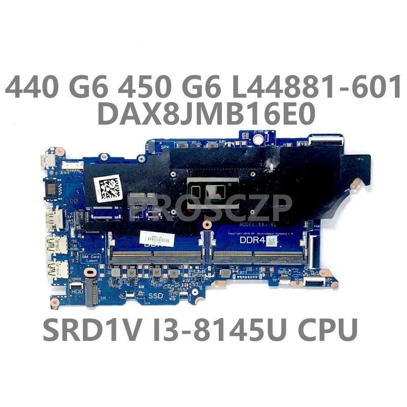 Для HP 440 G6 450 G6 L44881-601 L44881-501 DAX8JMB16E0 Материнская плата ноутбука W/ SRD1V I3-8145U CPU 100% полностью протестирована хорошо