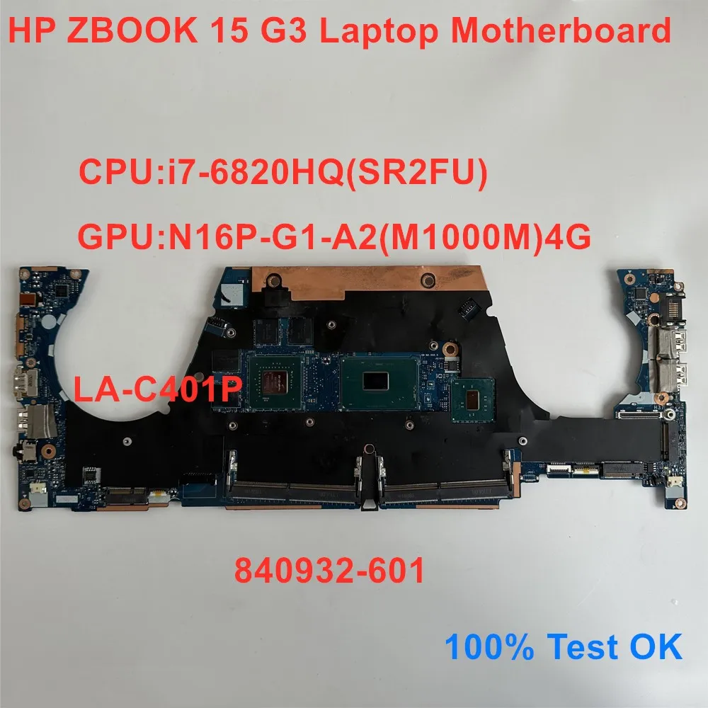 Для HP ZBOOK 15 G3 материнская плата для ноутбука LA-C401P CPU i7-6700HQ GPU M1000M 4G материнская плата 840932-601 100% ТЕСТ ОК