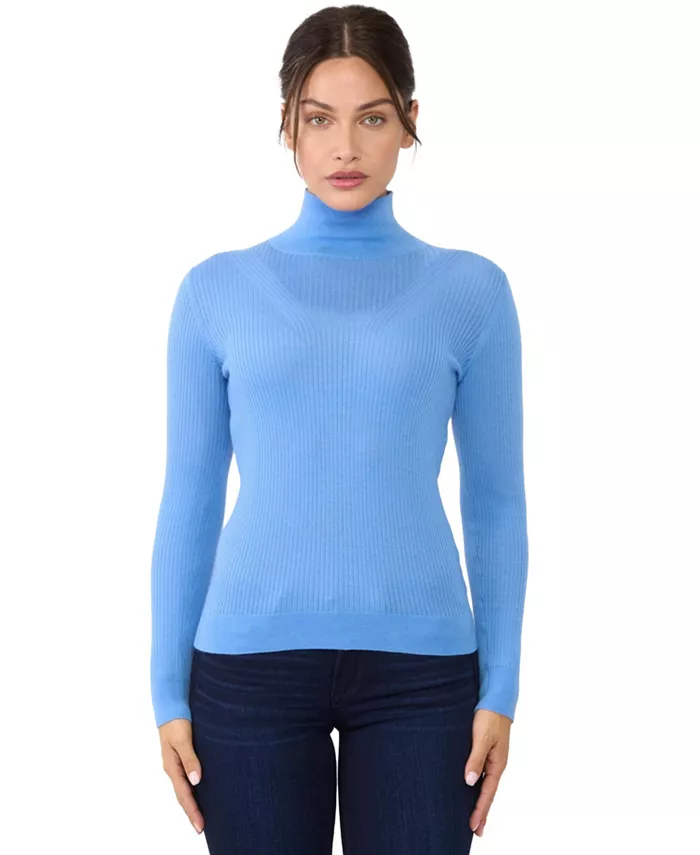 Женский свитер с высоким воротом из плотного кашемира и шелка в рубчик JENNIE LIU, синий
