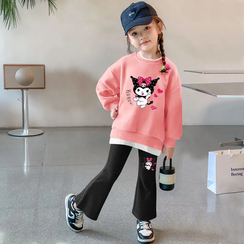 Kawaii Kuromi Sanrio Student Cute Cartoon Long Sleeve Hoodie Children Comfortable Warm Clothes Trousers Christmas Gifts for Kids