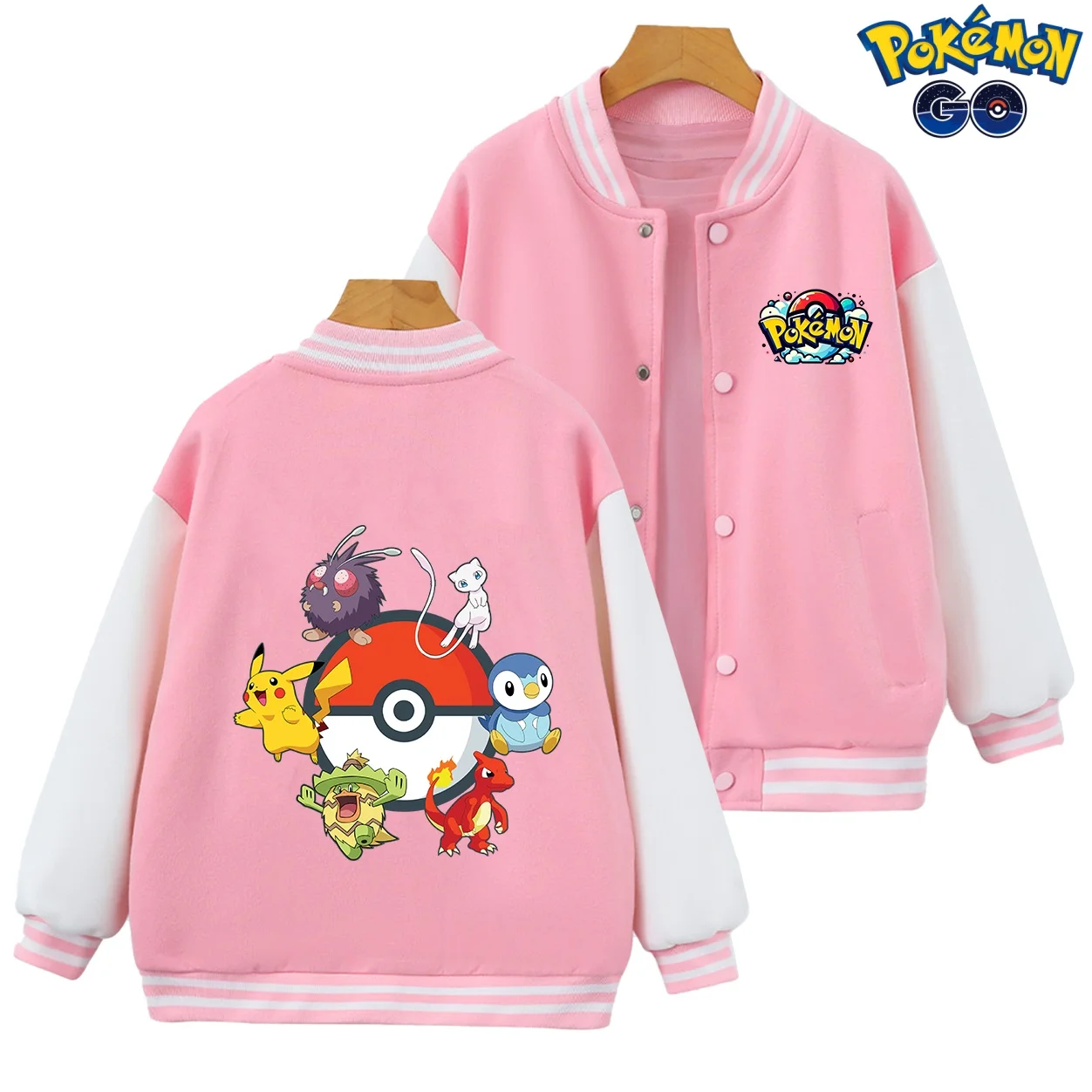 2026 New Kawaii Pokemon Kids Autumn/Winter Pikachu Printed Thick Warm Coat for Boys and Girls Aged 2-14 Youth Baseball Uniform