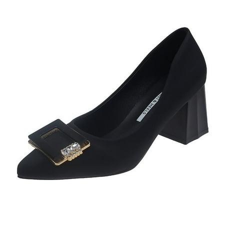 2024 Autumn New chunky heel single-layer shoes pointed toe shallow mouth square buckle high heels fashion professional Four Seasons women‘s shoes