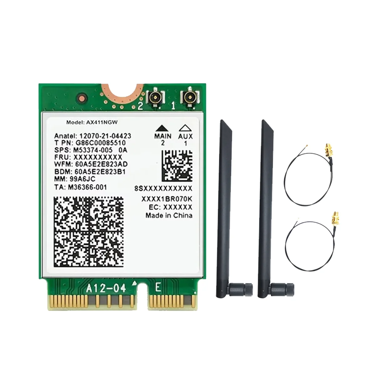Для Intel AX411 WiFi карта + 8 дБ антенна WiFi 6E CNVio2 BT 5,3 трехдиапазонный 5374 Мбит/с WiFi адаптер для ноутбука/ПК Win10/11-64-бит