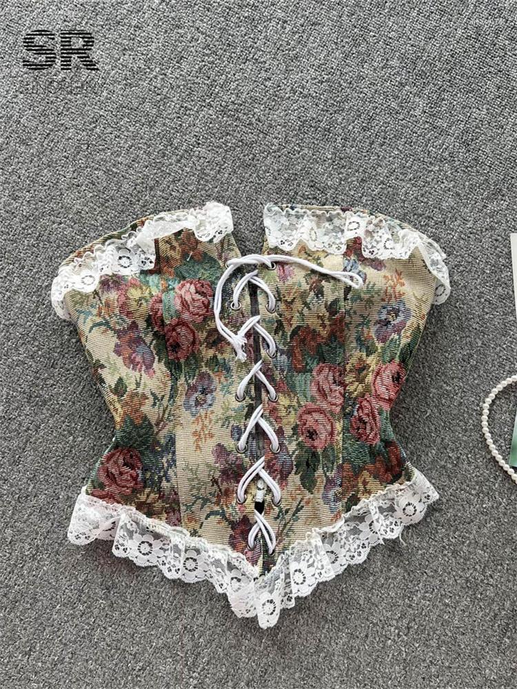 Women's Tanks SINGREINY Lace Strapless Backless Crop Top Women Patchwork Slash Neck Elastic Waist Off Shoulder Ladies Y2K Casual Sexy Tops, Green
