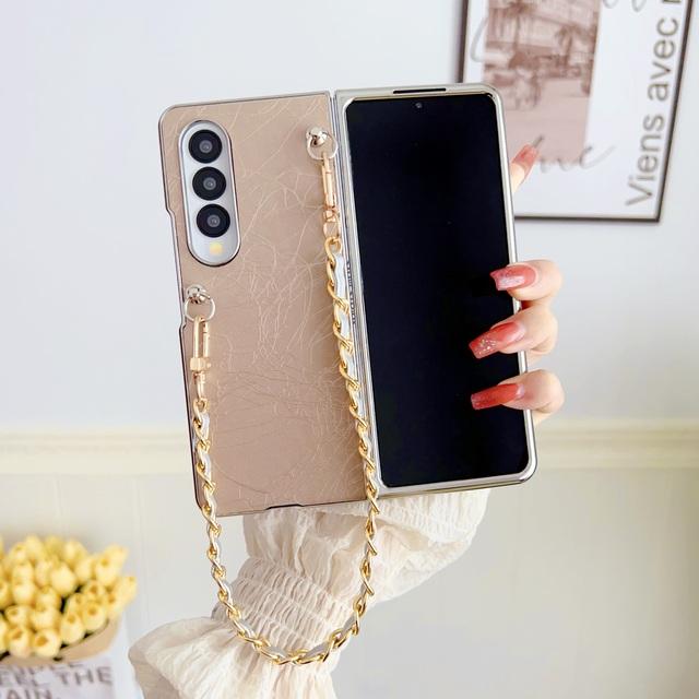 Для Samsung Galaxy Z Fold 4 3 Роскошный чехол с гальваническим покрытием и росписью с браслетом Противоударная защита Жесткая задняя крышка Аксессуары for Samsung Z Fold 4