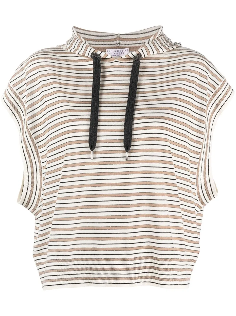 Autumn and Winter Pure Cotton Hooded Stripe Long Sleeve Women's Casual Pullover Fashion Elegant Commuter Young Style Tops