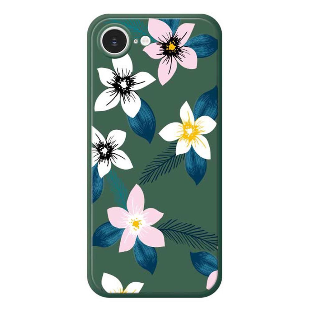 Для iPhone 16e Чехол Розовые Белые Цветы Синие Листья Узор Печать Прямой Край ТПУ Задняя Крышка Телефона Green