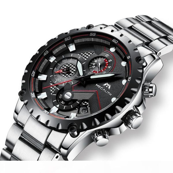 megalith fashion sports watch men waterproof chronograph black stainless steel strap analogue quartz wrist watches clock, Slivery;brown
