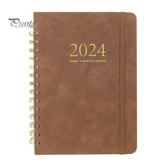 Дневник A5, ежедневник, гладкое письмо, утолщенная страница премиум-класса, кольцо-катушка, блокнот-планировщик на 2024 год, подарок коричневый
