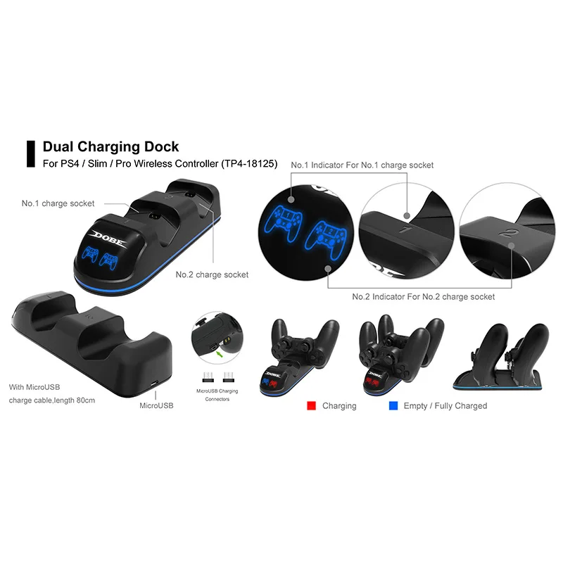 Док-станция для PS4 Slim / PS4 Pro с двойной ручкой и светодиодным индикатором