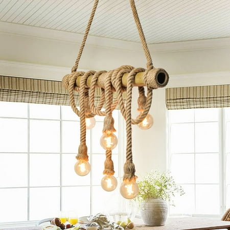 Bamboo Pendant Light Vintage Chandelier Edison Island-Light Asian Rope and Bamboo 6 Lights for Kitchen Island Restaurant Bar Bbonlinedress