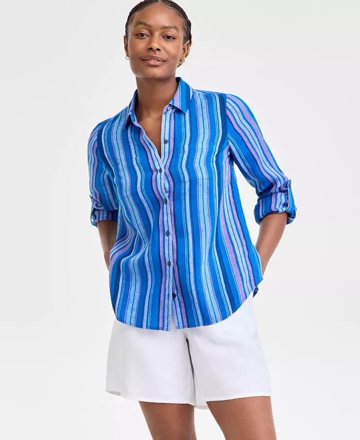 Женская блуза Magnolia из 100% льна с пуговицами и закатанными рукавами Charter Club, синий