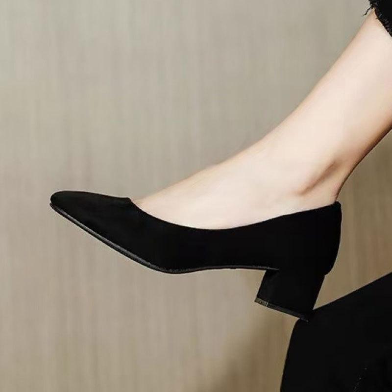 Долго стоять не утомительно женская обувь профессиональная мягкая подошва одинарная обувь квадратный носок толстый каблук высокие каблуки черные замшевые туфли женщины 40 чёрный