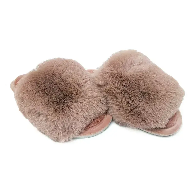 Домашние тапочки женские Corifei открытые пудра пушистые 36/37 (23-23,5 см)