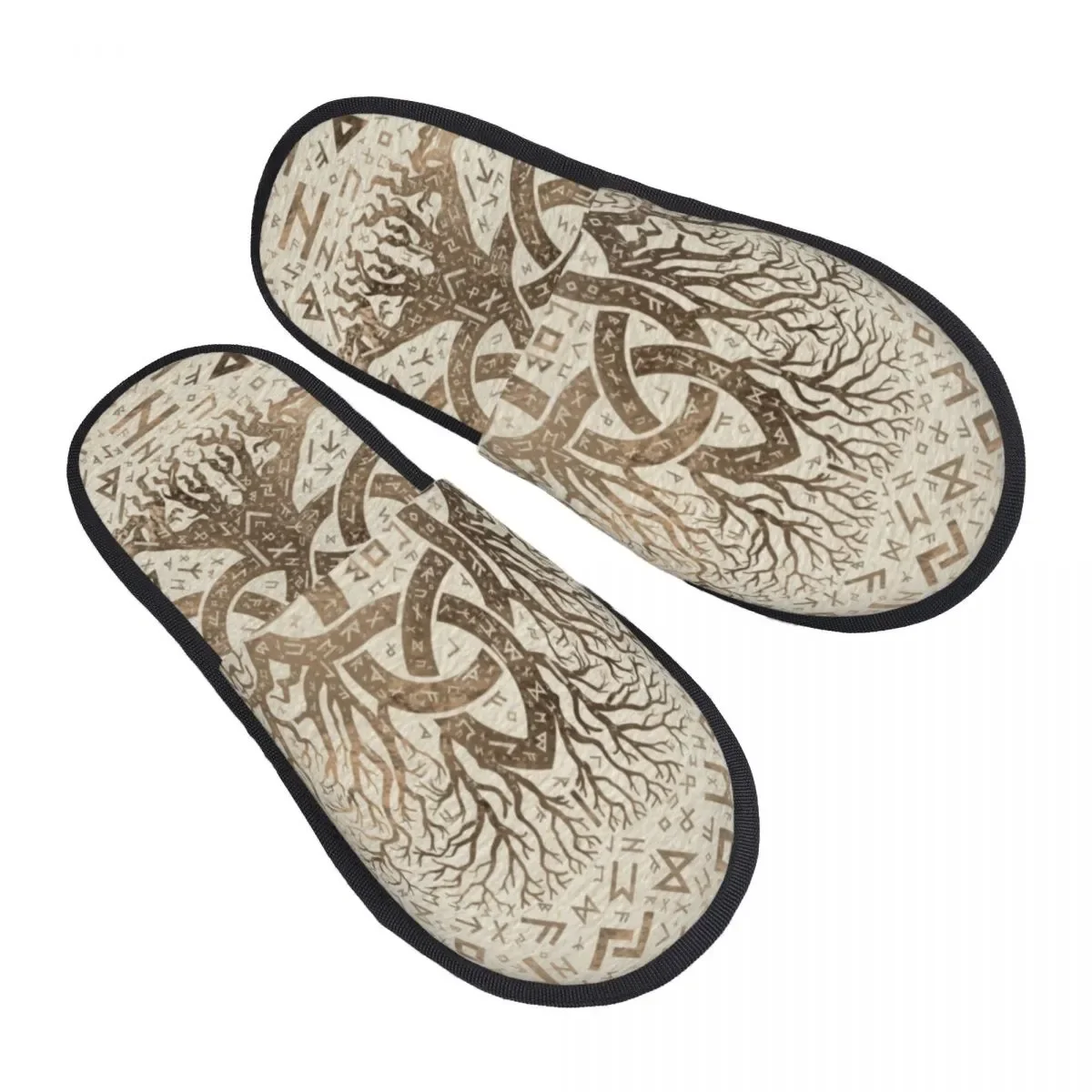 Домашние тапочки с изображением дерева жизни с Triquetra и Futhark Pastel Gold с эффектом памяти