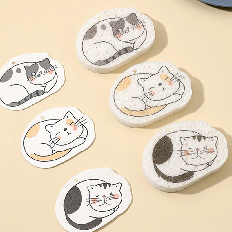 Домашние чистящие губки, чистящие прокладки, сжатые губки для мытья посуды, мультяшная Двусторонняя кухонная губка