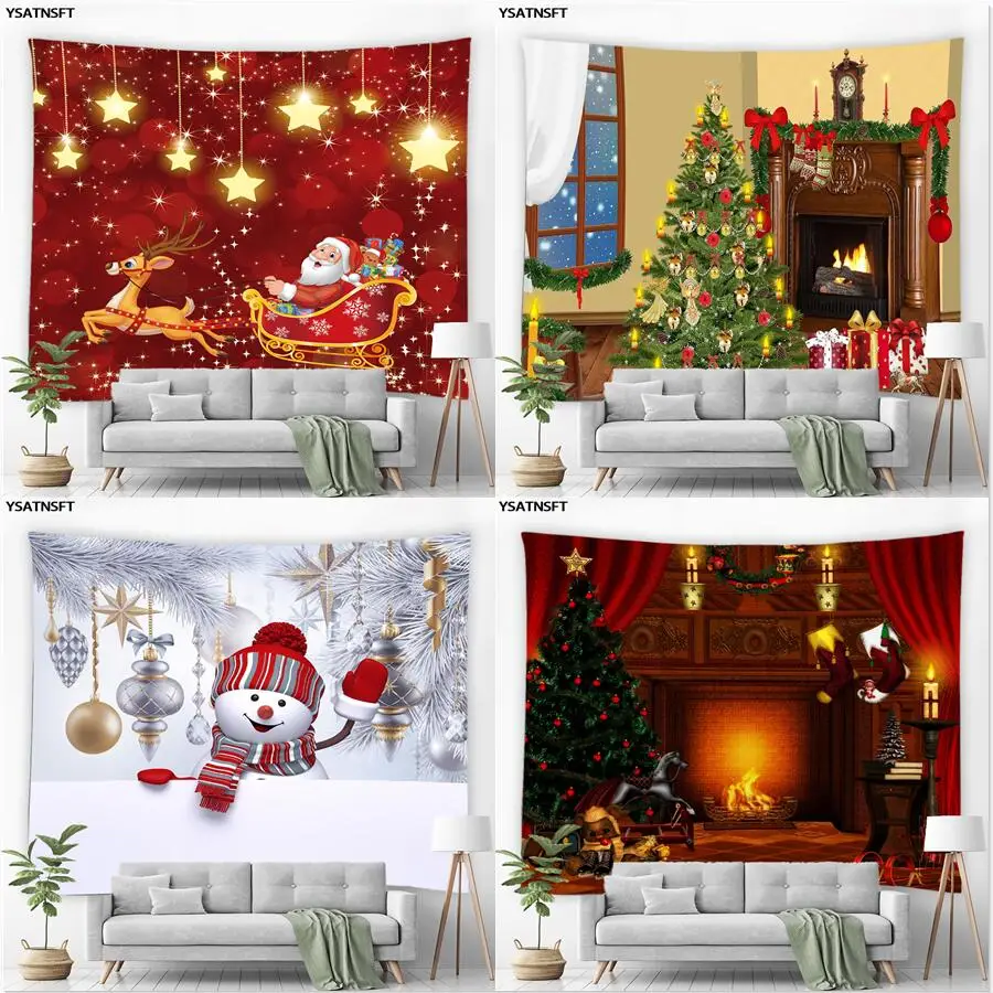 Домашний декор, Рождественский гобелен, настенный подвесной Санта-Клаус, Рождественская елка, камин, печать, гобелен для спальни 230x180 см, tapiz