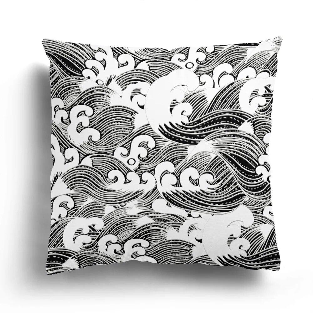 Домашний декор Спальня Гостиная Чехлы для подушек Японский волнистый узор Наволочка с морским принтом 40x40cm