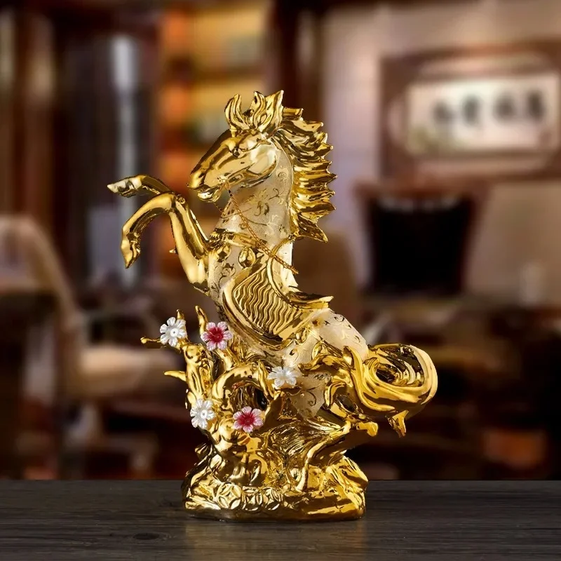 Домашний декор Gold Horse, керамические изделия, фарфоровые фигурки животных, свадебное украшение, подарок для влюбленных