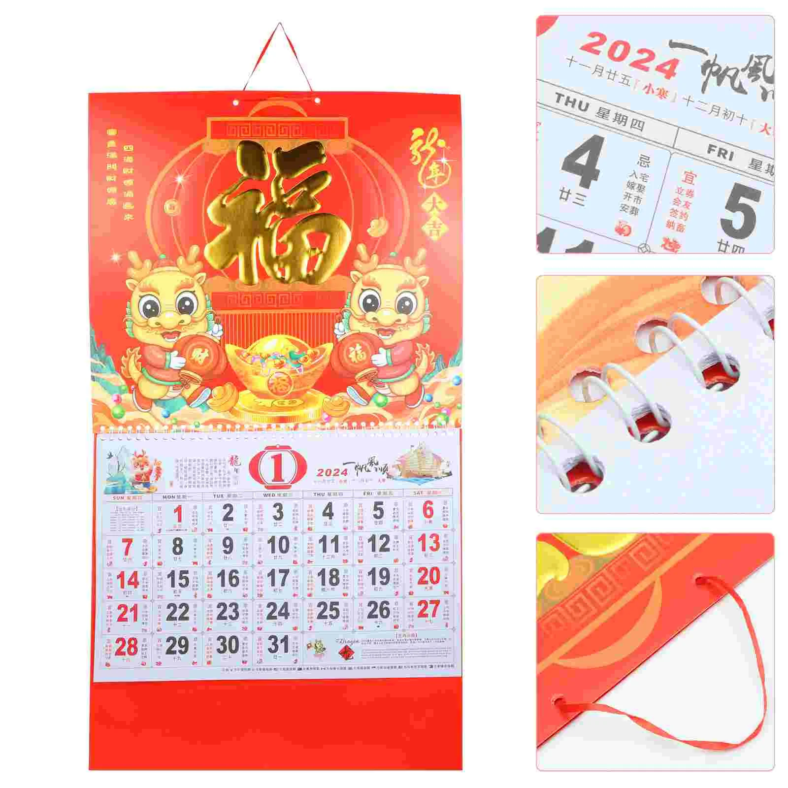 Домашний настенный календарь 2024, китайское украшение, декоративная подвесная бумага