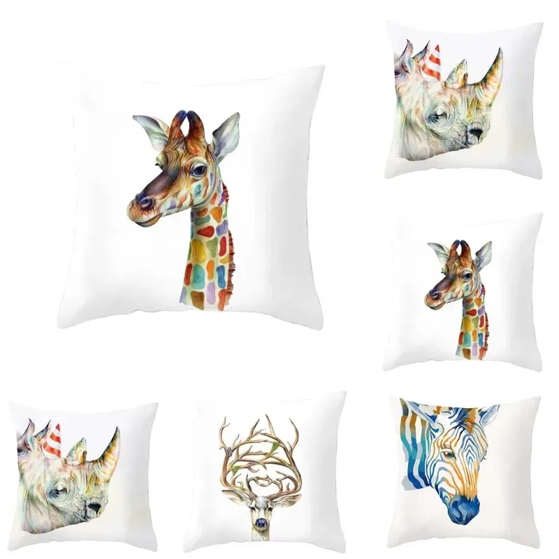 Домашняя Подушка, квадратная, милая, мультяшная, жираф, декоративная, Офисная декоративная наволочка